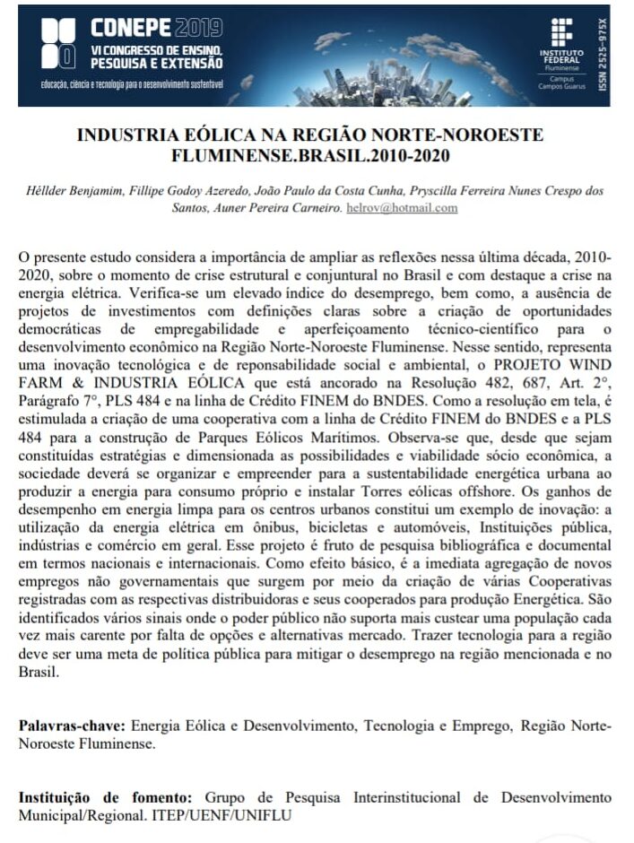O Instituto Federal Fluminense campus Campos Guarus realizará o VII CONGRESSO DE ENSINO, PESQUISA E EXTENSÃO (CONEPE) com o tema “Educação e Sociedade: A Nova Fronteira da Ciência”, transmitido pelo canal do campus: IFF Tube Campus Guarus, no período de 23 a 27 de novembro de 2020.
